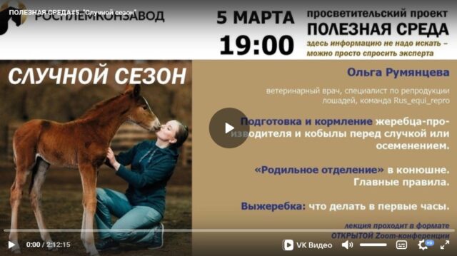 Запись пятой лекции просветительского проекта Ассоциации «Росплемконзавод» «Полезная среда», которая состоялась 5 марта в 19.00.