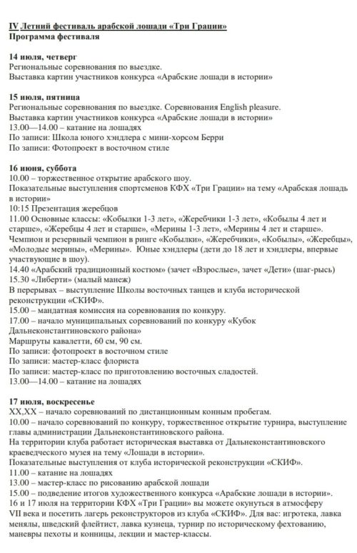 🌟 16 июля — арабское шоу (с 10 часов), соревнования по конкуру (с 17ч).