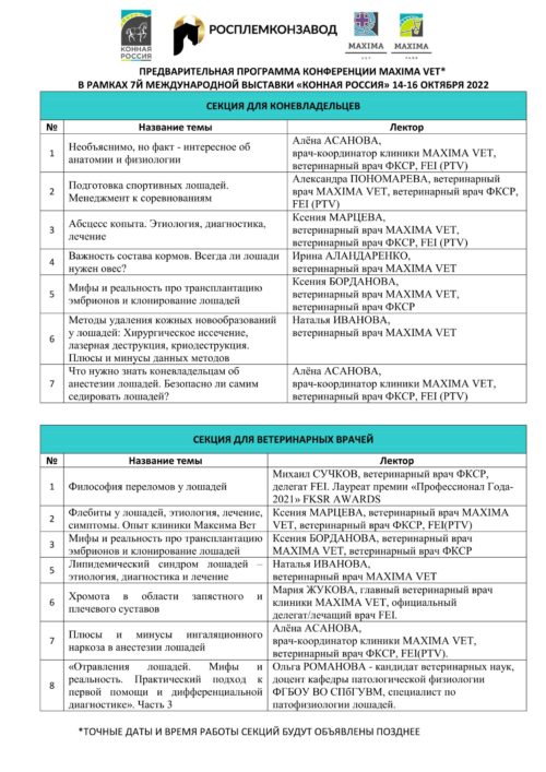 А пока с вопросами по участию в работе секций вы можете обратиться: info@maximavet.ru.