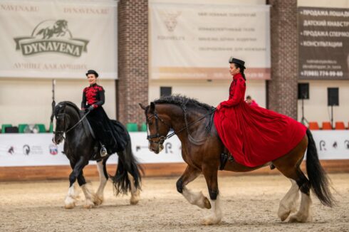 Незабываемые яркие эмоции подарили зрителям участники шоу-парада пород «КОННАЯ ПАЛИТРА», ставшего традиционным на «Конной России»! Настоящая феерия театральных номеров в исполнении конных коллективов, зарекомендовавших себя на конных фестивалях нашей страны, ежедневно наполняла Гранд Манеж бурными аплодисментами. В шоу выступали Конная база «Храброво», Арина Либонтова и ее лошади из Titanium Stud Farm, команда Нины Принц с номером «Щелкунчик», Центр конного наследия «Легенда», конный клуб «Лафарейдо» с огромными шайрами и выездковым тинкером, команда Rus Knab с лошадьми редкой в России породы Кнабструппер, Мария Краснова с орловскими кобылами Жамбикой и Жемчужиной, а также великолепные фризские лошади КСК «Neverland», могучая кобыла Волга владимирской породы, шикарный литовский тяжеловоз Жавесис, дрессированные пони Дымок и Медовик, Виктор Шаповалов и фризский жеребец Оlfert и хозяйство «Атланты Северной столицы» с вороным владимирским жеребцом Гольфстримом..