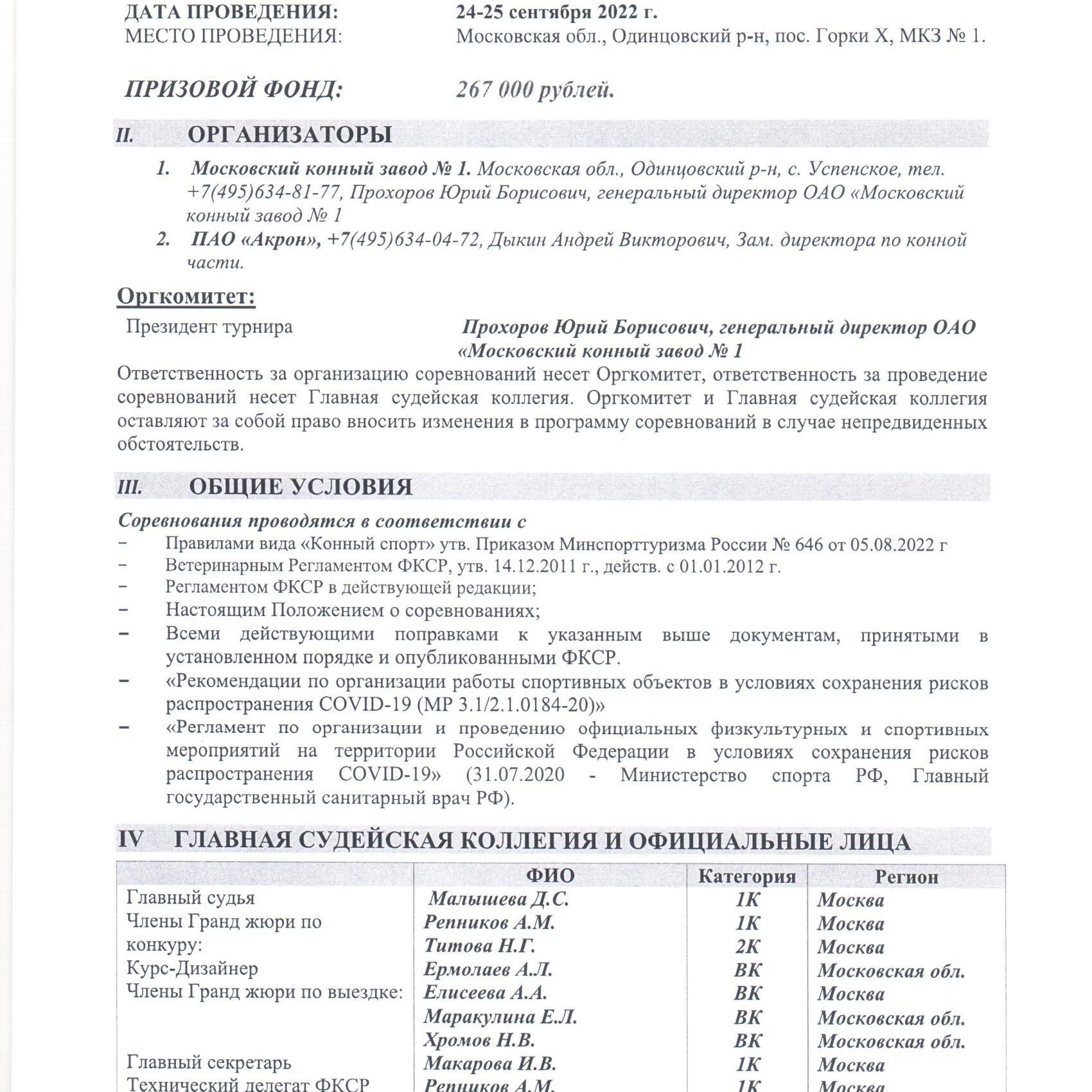 24 сентября 2022 г. в рамках проекта Ассоциации «Росплемконзавод» «Орловский рысак в спорте» на Московском конном заводе №1 будет разыгран Кубок по преодолению препятствий с отдельным зачетом для участников на лошадях орловской рысистой породы с призовым фондом 100000 рублей!