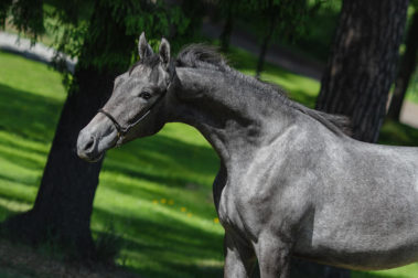 Парфюмер — эффектный, породный, выразительный жеребчик на стабильном, энергичном ходу. Красивые голова и шея, отличный корпус, жеребчик еще развивается, но уже сейчас в нем можно разглядеть будущего чемпиона.