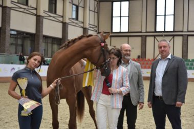 Специальные награды Ассоциации тракененского коннозаводства лучших представителям самой многочисленной среди участников породы вручала главный регистратор, ст.н.с. ВНИИ коневодства Анна Дорофеева. В Mover Class среди 2-летних лошадей были награждены