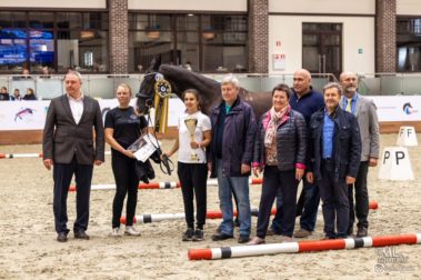 Лучшей прыгающей трехлеткой также стала кобыла – голландская полукровная Наоми представляла КСК «Карцево», где и родилась. Уступил ей серый полукровный мерин Кадиллак, рожденный на ферме «Полочаны» в Белоруссии.