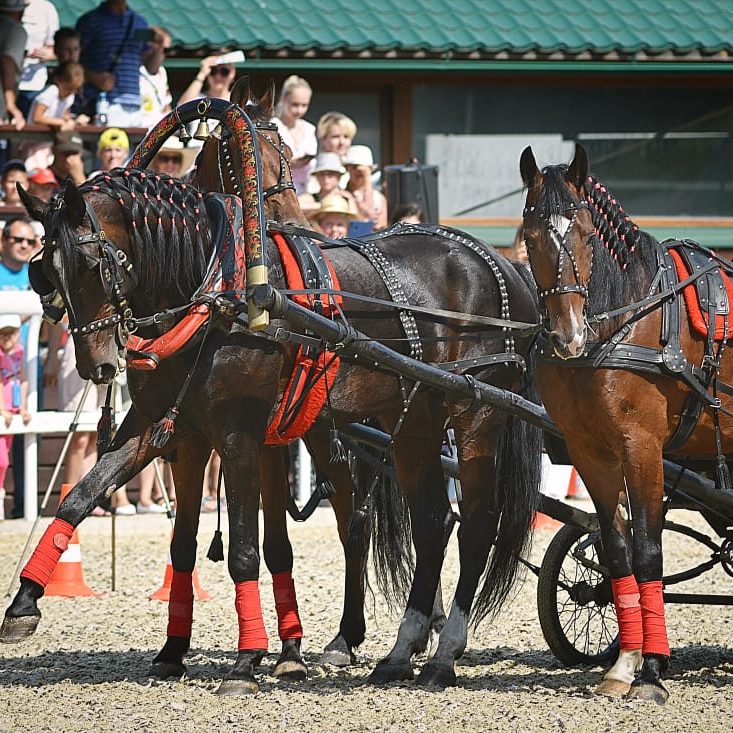13 августа в чемпионате для русских троек участвовало 9 команд! При полных трибунах мастера-наездники демонстрировали широкой публике изысканность орловских рысаков, универсальность белорусских упряжных и резвость вятских лошадей! Были так же тройки с русскими рысаками и пегими башкирскими помесями! Самым лучшим образом справился и с маршрутом, и со стилем, и с изысканностью театральной подачи номера Леонид Смаглий с легендой номера — гусарским походом! Изумительные, молодые и темпераментные серые в яблоко орловцы из клуба «Конник Подмосковья» под его управлением промчались на первое место. Второе место заняла тройка ПАО «Акрон», победившая в чемпионате 2021 года. Третье место заняла тройка-гастролер из Архангельска, представлявшая Агрофирму «Вельская» с наездником Андреем Перетягиным. Однако были ещё отдельные «зачеты» на стиль! Леонид Смаглий и «Конник Подмосковья» стали абсолютными победителями во всех зачетах. Почётное второе место по сумме баллов завоевала тройка Московского конного завода № 1, управляемая изысканно одетым Александром Каурковским, с элегантными сидящими в экипаже дамами в белых шляпках и с белыми зонтиками! Третьими в зачете «на стиль» стала тройка Василия Минчева и вятские Картечь, Лапа, Ламбада. Они разделили это место с гнедой тройкой русских рысаков Морозова Евгения, представлявших Костромской ипподром.