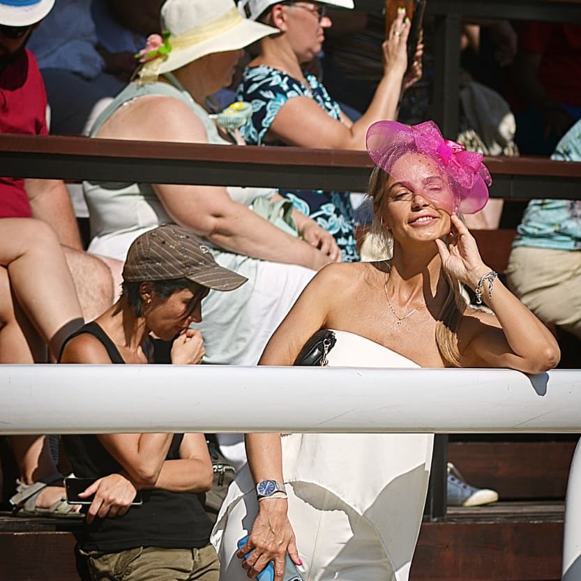Между заездами зрителей радовали не только лошади! Искусно одетые модели демонстрировали дизайнерские шляпки от Лилии Гуреевой. Камеры прессы были нацелены на изысканные головные уборы ничуть не меньше чем на лошадей! И после завершения маршрута последней тройки на плац вышли лучшие представители племенного состава Московского конного завода №1. Жеребец-производитель Гороскоп, чьи жеребята будут скоро показаны на аукционе в октябре! И серые орловские кобылы, от которых уже были получены феноменальные ипподромные бойцы, побившие многие рекорды.