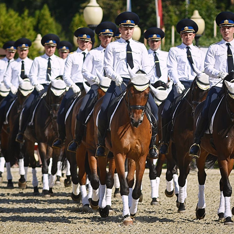 И уже традиционно коронным номером чемпионата «Крылатое сердце России» стало выступление котильона кавалерийского почетного эскорта Президентского полка СКМК ФСО России! Мастерски выезженные лошади, гордые красивые всадники! Сложнейшие фигуры, которые пары выполняли одновременно!
