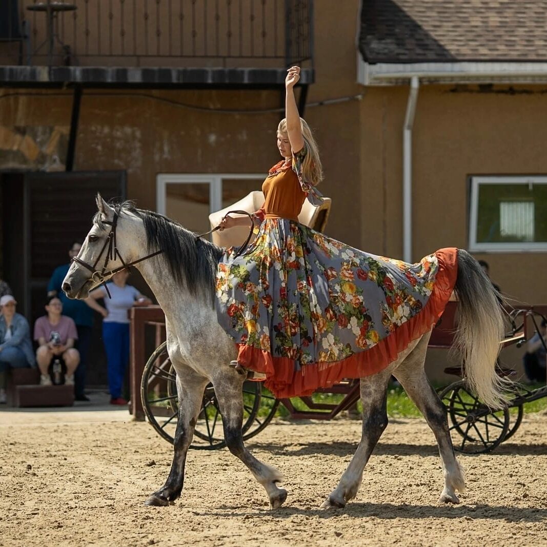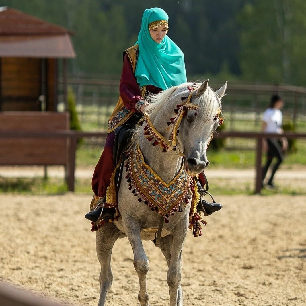 «В субботу 27 мая мне посчастливилось посетить V Летний фестиваль арабской лошади «Три Грации» , став его частью в составе участника ринга выводки «Русские традиции» с КФХ » КФХ «Аврора ГриНН» и Ириной Кутяевой.